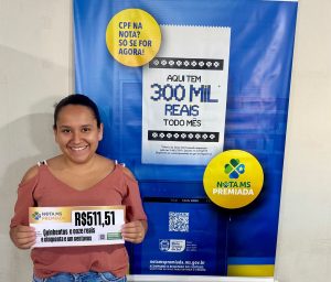 - BIANCA MONALIZE G DOS SANTOS, de Campo Grande – MS, mais uma feliz ganhadora de prêmio do Programa Nota MS Premiada.