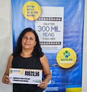 - Cristiana Dutra De Carvalho, de Campo Grande – MS, mais uma feliz ganhadora de prêmio do Programa Nota MS Premiada.